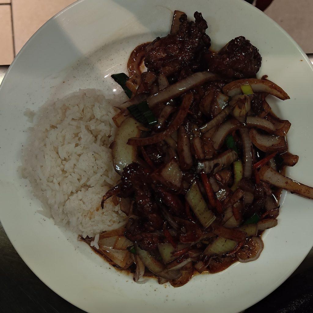 Nr.19a-b Knusprige Ente (mit gebr. Reis oder Nudeln)...3,A,F 10,50 €